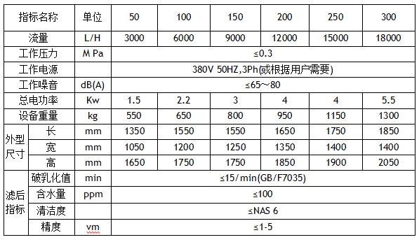 高效柴油燃油煤油聚結(jié)分離式濾油機(jī)技術(shù)參數(shù):