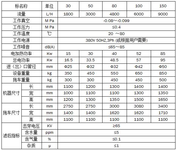 ZJA系列拖車箱式絕緣油真空凈油機(jī)參數(shù):