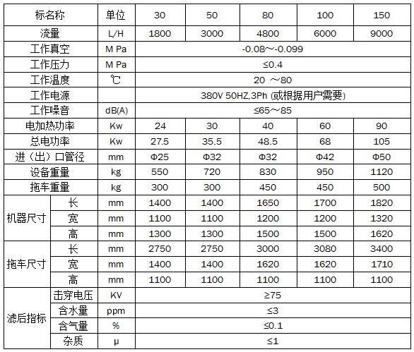 F系列拖車立式真空濾油機(jī)(防爆可定制)參數(shù):