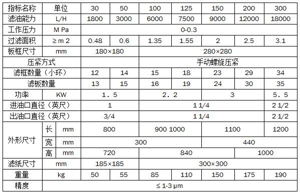 L系列透平油板框壓力式濾油機技術(shù)參數(shù):