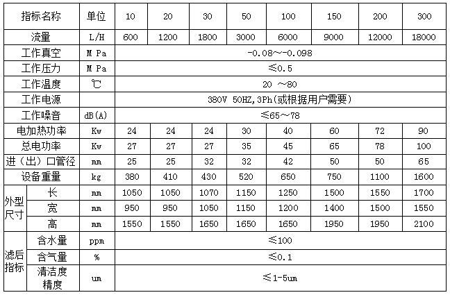 L系列液壓油專用小型真空濾油機(jī)參數(shù):