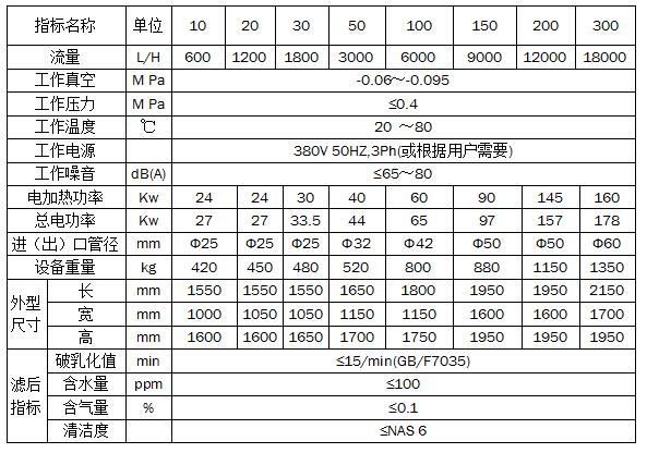 板框式真空濾油機(jī)技術(shù)參數(shù)