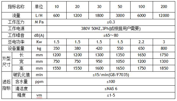 J系列防爆式聚結(jié)分離式濾油機(jī)技術(shù)參數(shù):