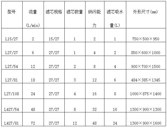 L系列精細精濾器參數(shù):